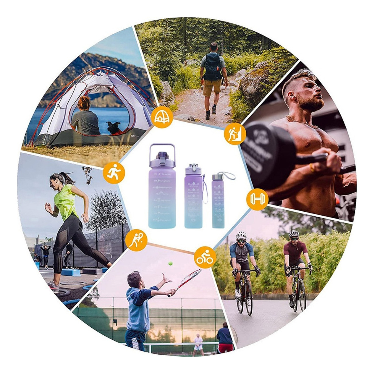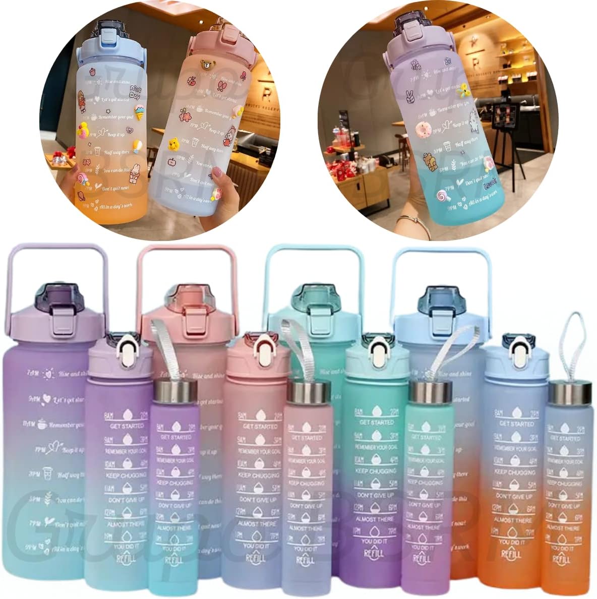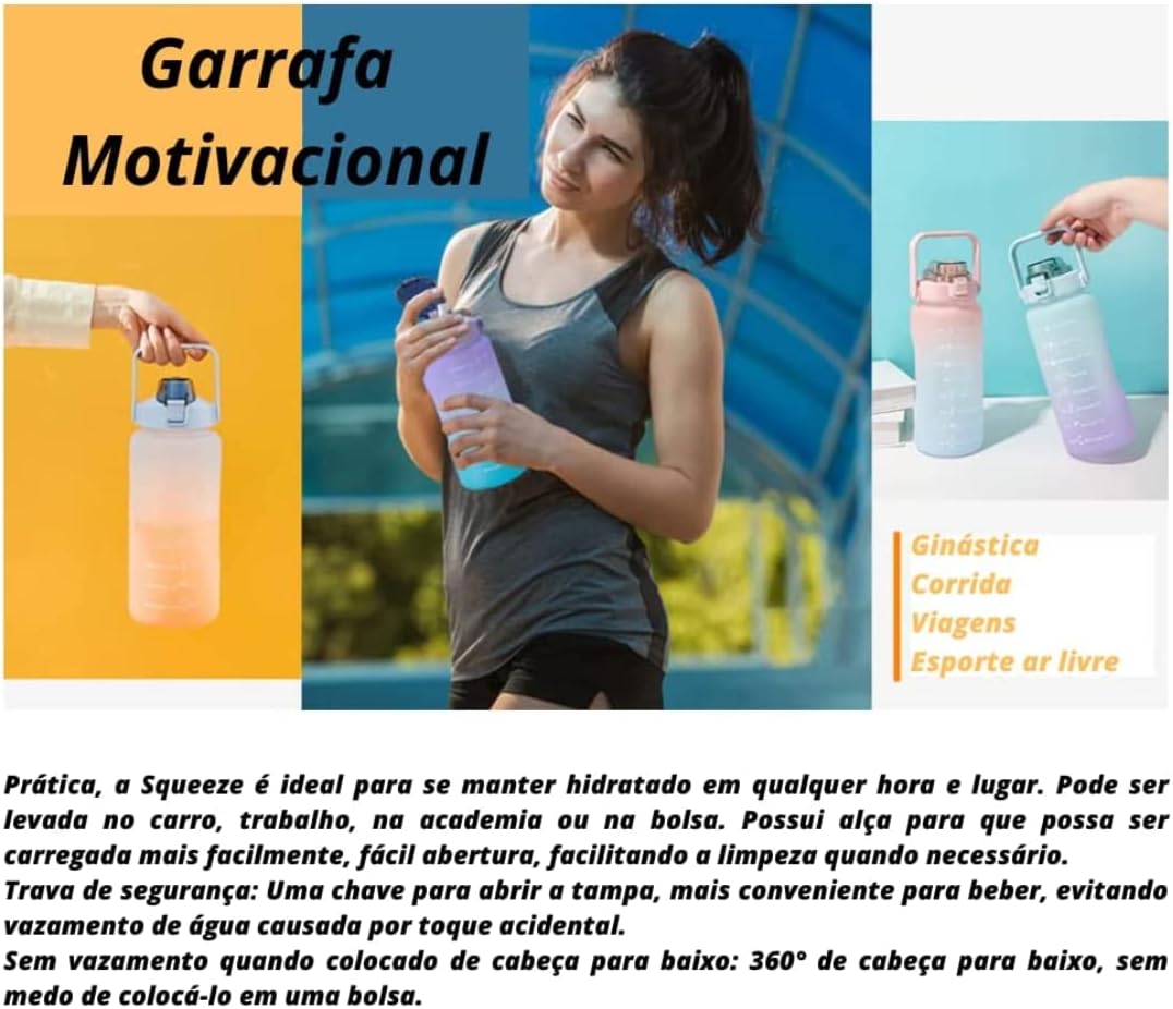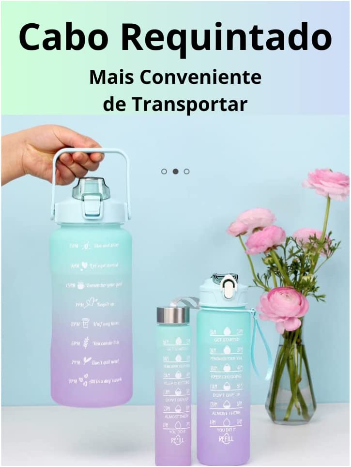 Medidas em mL ou Oz;Kit 3 Garrafas De Água