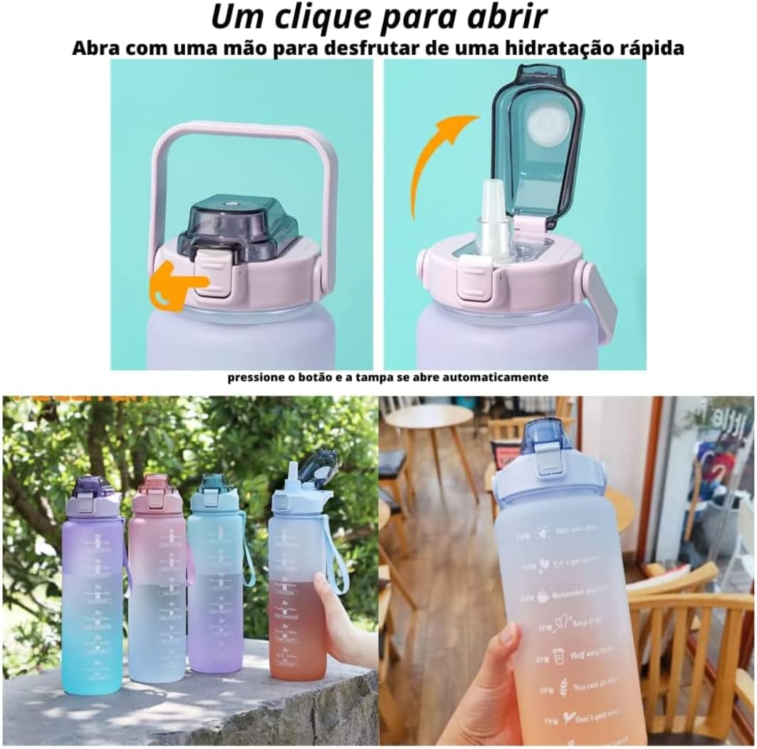 Abertura por um Click e Vedação Anti Vazamento,Kit com 3 garrafas de água